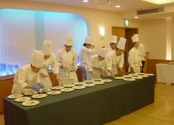 「クラブ・ド・フチュール Clab de Future 」という活動は、 若手料理人育成の一環として考えられた企画です。職場の異なる六人の若手シェフ達でひとつのコースを完成させ、一般の人に提供するという内容で、会食後には各ホテルの料理長からの激励が受けられます。