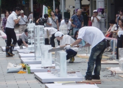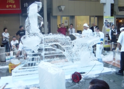 新潟市で十数回を迎える氷彫刻のコンテストです。持ち時間1時間10分という短い時間の中で、選手達は練習の成果を発揮すべく毎回真剣に作品に取り組んでいます。その成果は一般の人々の公開のもとで表彰されます。